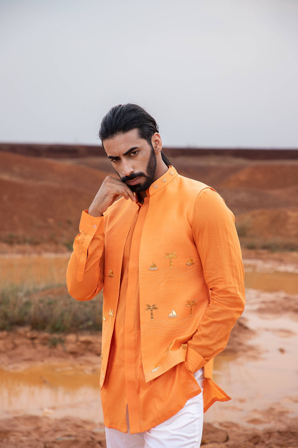Sand Abstract Bundi / Nehru Jacket Set