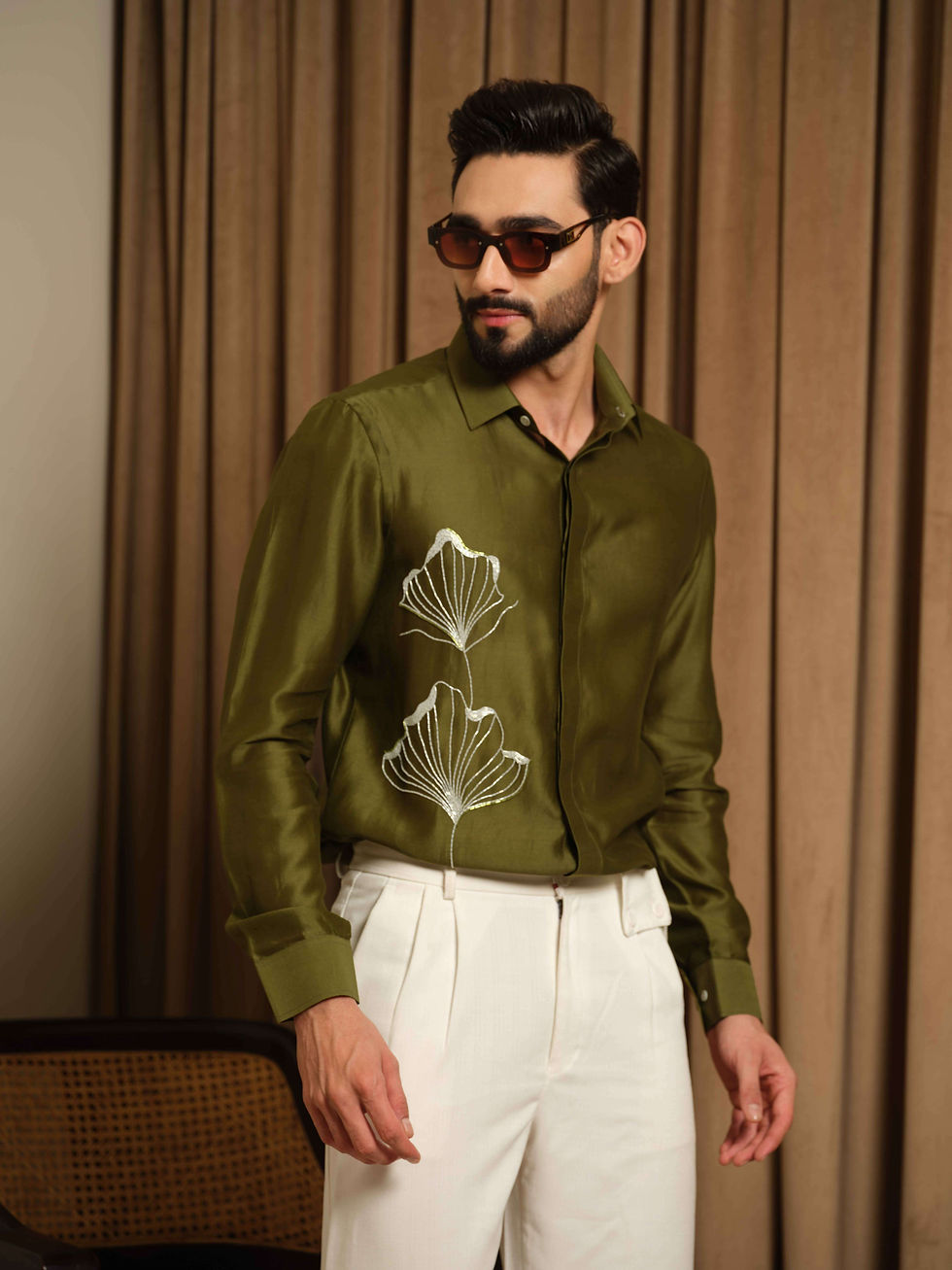 The shirt has a pleated placket and pleating details at back. Hand dyed from below and Lush green back shoulder, this piece is perfect for your vacations. Made in Enzyme Washed Cotton, the feel is soft and weighs very light.