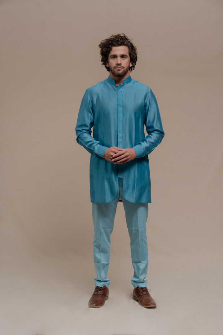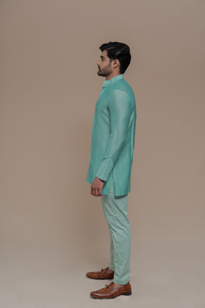 Teal Smoking Short Kurta/Tuxedo Shirt